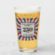 This American-style pint glass, also known as a shaker glass, with "Happy Birthday America! 250 years 1976-2026" in a dark blue and grey frame is featured on this unique collector's glass. The background pattern on front and back is a fun starburst design painted on distressed vertical wood planks for a vintage look. Personal name is on the back in a retro typewriter font. Change the name to make it yours using the Template provided. (To edit and change font style-color-size and more-- use the Design Tool.) Made with top quality Libbey barware, 16oz. capacity and measures 3.5"diameter x 5.875"h. Excellent printing. See "About" for more information. ---->>>Hand wash only.<<<-----