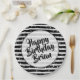 Feiern Sie Ihren Geburtstag mit diesen lustigen, schwarz-weiß gestreiften Tellern. Das trendige geometrische Muster ist ein einfaches, schwarz-weißes Streifen-Muster mit Konfetti. Es gibt einen weißen Kreis in der Mitte für Ihren Text und eine Textvorlage, damit Sie ihn ganz einfach in Ihre eigenen Wörter, Namen oder Ereignisse ändern können. Dieses Design eignet sich für jede Anlässe wie Geburtstagsfeiern, Duschen, Jahrestage, Abschlüsse und vieles mehr. Ändern Sie einfach den Text, um ihn dem Event anzupassen.