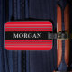 Stellen Sie Ihren Namen in Weiß auf diesem schwarzen, grau gestreiften und roten Design.