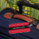 Name in Weiß, Schwarz und Grau Streifen, rot Gepäckanhänger