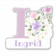 Name Ingrid & Initial mit Blumendesign Aufkleber