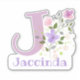 Name Jaccinda plus Initial mit Blumendesign Aufkleber