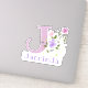 Personalisieren Sie jedes Element mit einem Namen und Initial mit einem Blumen-Design-Ausschneidungs-Sticker. Beispielname ist Jaccinda.