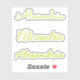 Dekorieren Sie Ihren Laptop, Ihre Wasserflasche, Ihr Gehäuse oder andere Gegenstände mit drei individuellen Aufklebern, die Ihren Namen in 3 verschiedenen handgeschriebenen limiengrünen Schriftart enthalten. Fügen Sie Ihren Namen in die Sidebar ein. Wählen Sie "matte weiß" in der Sidebar, um den transparenten Hintergrund um Ihren Namen weiß zu machen.