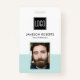 Personalisiertes Business Company ID Abzeichen mit pastellfarbenem aquamarin-weißem Hintergrund, Foto des Mitarbeiters, Firmenlogo, Name, Strichcode und Beruf.