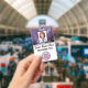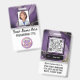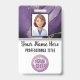 Stellen Sie sich professionell mit diesem individuell gestaltbaren Mitarbeiter-ID-Abzeichen heraus, das für Krankenschwestern, Ärzte und medizinisches Personal konzipiert ist. Die Vorderseite ist mit einem moody-lila und goldgelben Alkoholtupfer-Design mit Foto-Rahmen, Name und Titel in eleganten Drehbuch- und Blockschrift-Schriftart sowie Platz für Ihr Business-Logo ausgestattet. Auf der Rückseite befinden sich eine QR- oder Barcode-Vorlage, Rücksendeadresse und passender marmorierter Hintergrund. Ideal für Krankenschwestern oder Krankenpfleger mit Stil.