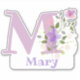 Name Mary plus Initial mit Blumendesign Aufkleber