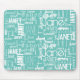 Dieses Mauspad ist minzgrün und weiß mit einer Textwortwolke kann mit einem beliebigen Namen oder Wort personalisiert werden.