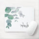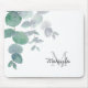 Dieses botanische Mauspad mit Eukalyptus-Aquarell in sanften Grüntönen auf weißem Hintergrund. Passen Sie es mit Ihrem Namen und Monogramm an. Original Wasserfarbe © Michele Davies.
