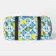 This duffle bag features a unique Mediterranean-style pattern of French country tiles and lemons. It is easily customizable with your name and monogram.
