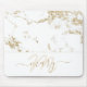 Name Monogram Marble Gold Elegant Weiß Abstrakt Mousepad