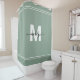 Erstellen Sie Ihren eigenen, individuellen, eleganten, grünen oder olive-grünen Monogramm-Duschvorhang. Dieser personalisierte Duschvorhang bringt eine Touch von Eleganz in jedes Badezimmer mit einer individuellen Monogramm-Design auf sanften und olivgrünem Hintergrund. Es verfügt über einen fett weißen Anfangsbuchstaben gepaart mit einem fließenden schwarzen Skriptnamen, wodurch ein sauberer und eleganter Kontrast entsteht. Doppel weiße Streifen oben und unten fügen dem Gesamtbild ein poliertes Detail hinzu. Alle Farben, einschließlich Hintergrund und Text, können individuell an Ihren persönlichen Stil oder Ihre Badezimmer-Dekoration angepasst werden. Dieser mit Monogramm Duschvorhang eignet sich perfekt für naturlich inspiriert, Bauernhäuser oder moderne, minimalistische Bereiche und ist auch ein Geschenk für Hochzeiten, Hauswärme, Geburtstage oder andere besondere Anlässe. Es verbindet Alltagsfunktionen mit zeitlosem, personalisiertem Design.