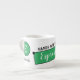 Espresso-Tasse. Geschenkidee für einen Kaffeeliebhaber. Jobliste: Entspannen, kühlen, glücklich sein. Hände von meinem Espresso. Fügen Sie einen Namen und einen Initial hinzu. Design in grün und schwarz.