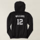 Ein vollständig anpassbares Hoodie Sweatshirt für Fußballspieler, Trainer und Fans, mit benutzerdefinierten Textboxen, in denen Sie Ihren eigenen Fußballmannschaftsnamen auf der Vorderseite eingeben können, und Fußball-Spieler Name und Nummer auf der Rückseite. Ideal für das Tragen während der Fußballtrainings und Trainings, für intramural und siebenundsiebzig Ligen oder zu jeder Zeit während der Fußballsaison!