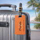 Orangefarbenes Imitat Lederprint als Hintergrund. Personalisieren und fügen Sie Ihren Vornamen, Monogramm Buchstaben und vollständigen Namen auf der Vorderseite. Ihre Kontaktinformationen auf der Rückseite. Schwarzer Text.