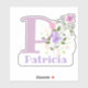 Personalisieren Sie jedes Element mit einem Namen und Initial mit einem Blumen-Design-Ausschneidungs-Sticker. Beispielname ist Patricia.