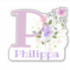 Name Philippa plus Initial mit Blumendesign Aufkleber