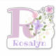 Personalisieren Sie jedes Element mit einem Namen und Initial mit einem Blumen-Design-Ausschneidungs-Sticker. Beispielname ist Rosalyn.