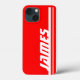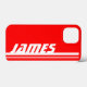 iPhone Gehäuse im Rot-Weiß-Stil, liest: James oder personalisieren Sie diesen Fall mit dem Namen Ihrer Wahl bis zu 6 Buchstaben. Ein perfektes Geschenk für einen sportlichen Fan. Einzigartig entworfen von Sarah Trett. www.sarahtrett.com für www.mylittleeden.com auf zazzle.