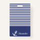 Marineblau- und weißesgestreiftes Abzeichen kann mit Ihrem Namen personalisiert sein. Ein weißer Anker ist neben Ihrem Namen. Über dem Namen sind Marineblau- und weißehorizontale Streifen.