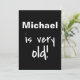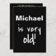 Jemandem ein lustiges "Du bist alt" Geburtstag "über dem Hügel" Geburtstagsparty mit humorvollen, schnickigen und sarkastischen Geburtstagsfeier, die mit ihrem Namen personalisiert ist und sagt, ihr Name "Is Very Old" auf der Vorderseite. Die andere Seite der Einladung ist für das Party anpassbar und hat das Alter, in dem sich die Person dreht. Diese schwarze Einladung schafft Spaß und Lachen. Die Wörter sind in weißem Text auf schwarz und auf beiden Seiten. Sie können anpassen, um es ganz Ihren zu machen. Diese Einladung koordiniert mit Party-Vorräten wie Papier-Teller und Tassen. Viel Spaß mit diesem Wort Kunst.