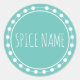 Türkisfarbene Gewürzaufkleber mit weißlicher Schrift. Löschen Sie einfach die Wörter und fügen Sie Ihren Gewürznamen hinzu. Wenn die Etiketten Ihrer Gewürzjar getragen und gefärbt werden, erfrischen Sie sie mit diesem niedlichen Geschmacksjar-Label.