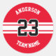 Name, Team und Anzahl der Red Designs Runder Aufkleber