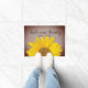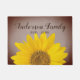 Ein nahes Foto einer hellgelben Sonnenblume mit eigenem Familiennamen und dem Jahr der Einrichtung auf grauem und braunem Omelett. Anpassen durch Bearbeiten des Familiennamen und des Jahres.