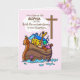 Noahs Arche auf Taufekarte eines rosa Mädchens ist so wertvoll. Die Tiere schauen aus Noahs Arche heraus und sehen das Kreuz durch die Wolken. Süße Karte, zum zu geben einem Mädchen, wie sie den Jahrestag ihrer Taufe feiert. Fertigen Sie den Namen und das Jahr auf dieser Karte besonders an.
