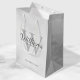 Fügen Sie Ihrer Hochzeit eine persönliche Touch mit personalisierten Trauzeugen Geschenktasche hinzu. Diese Geschenktasche ist mit dem Namen des personalisierten Trauzeugen im Stil eines Schriftartes in Grau-Klassik-Schrift ausgestattet. Die Hochzeitsdetails sind in Grau-Klassik-Serif-Schriftart und Monogramm in hellgrau-klassischem Serif-Schriftart-Stil auf weißem Marmorhintergrund. Auch perfekt für Trauzeuge, Brautvater, Ringträger und mehr.