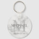 Fügen Sie Ihrer Hochzeit eine persönliche Touch mit personalisierten Trauzeugen Schlüsselanhänger hinzu. Dieser Schlüsselanhänger zeigt den Namen des personalisierten Trauzeugen mit Titel und Hochzeitdatum in Grau und Monogramm in hellgrau als Hintergrund, im klassischen Serif-Schriftart-Stil, auf weißem Marmor Hintergrund. Auch perfekt für Trauzeuge, Brautvater, Ringträger und mehr. Bitte beachten Sie: Die Marmordetails werden im Kunstwerk simuliert. Bei der Herstellung dieses Produktes wird kein Marmor verwendet
