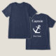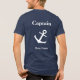 Dieses nautische Design hat einen weißen Schiffsanker in der Mitte. Über dem Anker steht im weißen Text 'Captain'. Am unteren Rand ist ein weißer Text, den Sie zum Bootsnamen ändern können.