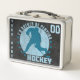 Eishockey Metal Lunch Tin. Fügen Sie der Dose Ihren eigenen Namen und Ihre Nummer hinzu, um eine personalisierte Lunchbox für Schule, Uni, Büro oder Ausflüge zu machen! Benutzen Sie einfach die Textfelder auf der rechten Seite des Bildes. Vintages Design mit einem Hockeyspieler und dem Text, den ich lieber als Hockey spielen würde