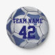 Name und Nummer des Fußball-Balls blau und weiß Pappteller