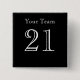 Auf dieser Schaltfläche können Sie Ihren Teamnamen und Ihre Teamnummer personalisiert haben. Wenn Sie mit dem benutzerdefinierten Entwurfswerkzeug gewollt haben, die Farben des Texts, der Zahlen oder des Hintergrunds zu ändern. Dies ist ein personalisierter Knopf für sportliche Eltern, Spieler oder Mannschaften.