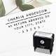 Rücksendeadresse Gummi Briefmarke mit Ihrem Namen in einem modernen sans Serif Schriftart und Rücksendeadresse unten.