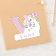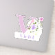 Personalisieren Sie jedes Element mit einem Namen und Initial mit einem Blumen-Design-Ausschneidungs-Sticker. Beispielname ist Violet.