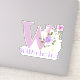 Personalisieren Sie jedes Element mit einem Namen und Initial mit einem Blumen-Design-Ausschneidungs-Sticker. Beispielname ist Wilhelmina.
