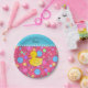 Fügen Gummientenmuster des modernen und niedlichen Namegelbs, mit bunten Regenbogenbabygeklapper und blaue der Herzstreifen, die mit gerade personalisiert ist, Ihre Namensgeschenke oder Monogrammgeschenke oder Ihre Initialen für ein einzigartiges Geschenk hinzu. Niedliche Gummientengeschenkideen für Babys, Jungen und Mädchen. Ideal für Babypartys. Wenn Sie besonders anfertigen es Knopf schlagen, können Sie die Farbe und die Art des Schriftartes ändern oder Ihre eigenen Bilder addieren.
