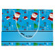 Modernes und trendy Sport Lacrossemuster mit Lacrossestöcken, Schnee, niedlicher Weihnachtsmann, Weihnachtsmannmützen, weiße rote Schneeflocken, grüne rote und gelbe Sterne, grüne Weihnachtsbäume mit Himmelblauhintergrund und mit dem Streifen des blauen Schwarzen des Himmels, der mit gerade personalisiert ist, fügen Ihre Namensgeschenke oder Monogrammgeschenke oder Ihre Initialen für ein einzigartiges Geschenk hinzu. Sportgeschenkideen für Männer und Jungen und Mädchen. Ideal für Weihnachtsgeschenke.