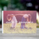 Ein Gästebuch personalisiert mit einem Foto des glücklichen Ehepaares und ihren Namen, die in einer eigenartigen Schrift verfasst sind. Fügen Sie auch Ihren Hochzeitstag hinzu! Das Foto wird mit einem traumhaften Verlauf dekoriert, der dem Foto ein rosa Glühen verleiht.