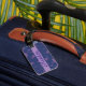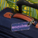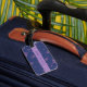 Ein reizendes und das eines netten Gepäckanhängers in einem blauen und malvenfarbenen mit Blumenmotiv, bereit, mit Ihrem Namen auf der Front und Telefonnummer auf der Rückseite besonders angefertigt zu werden.