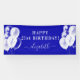 Für eine mädchenhafte und glamouröse 21. Geburtstagsfeier (oder jedes Alter). Ein königlich blauer Hintergrund. Mit weißen Ballons dekoriert. Personalisieren und fügen Sie einen Namen und Alter 21. Weiße Buchstaben. Der Name wird mit einem modernen handgeschriebenen Stilskript mit Swashes geschrieben. Um die Swashes behalten, löschen Sie nur den Beispielnamen, verlass die Leerzeichen oder Emoji's vor und nach dem Namen.