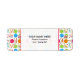 Ein Adressetikett mit einem Süßigkeitsmuster, bestehend aus Lollipops, Gummibällen, Kuchen und Stick-Süßigkeiten.