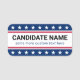Namensschild mit Ihrem benutzerdefinierten Kandidatennamen und einer Zeile zusätzlichen benutzerdefinierten Textes. Füllen Sie den Namen Ihres bevorzugten politischen Kandidaten aus.