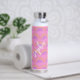 Moderne Aquarellfarben pastellfarbene Regenbogenmuster hellrosa Wasserflasche personalisiert mit Ihrem Namen in trendiger handgeschriebener Schriftzeichen-Kalligrafie. ++++++++ Kann ein niedliches Sake-Geschenk für einen Geburtstag, Süß 16, Hochzeit oder Brautparty sein.