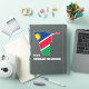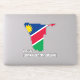 Namibia Flag Map Patriotic Aufkleber in der Kontur der Namibia-Karte. Die Karte ist mit dem Muster und den Farben der Namibia Nationalflagge verziert. Kleine Aufkleber mit dem Ländernamen sind ebenfalls enthalten. Der Text kann mit der Funktion "Anpassen!" vollständig angepasst werden. Namibia Kartenaufkleber ist das perfekte klebrige Geschenk, das man überall auf das Herz legen kann. © 2021 LnderOfTheWorld