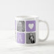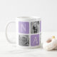 Passen Sie dieses niedliche Design der modernen Tasse an, um Ihre Lieblingsgroßmutter an diesem Muttertag, Weihnachten oder Geburtstag zu feiern! Das Design besteht aus abwechselnden Quadraten von Fotos und orchid lila Buchstabenblöcken, die "NANA" in modernen Serifenschriften mit einem weißen Herz im letzten Quadrat buchstabieren. Fügen Sie fünf Ihrer beliebten quadratischen Fotos (perfekt für Instagram!) mit den bereitgestellten Vorlagen hinzu.