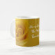 Lass Deiner Nana, wie besonders sie ist mit einer personalisierten Morgenkaffee oder Tee-Tasse. Diese Tasse ist mit einer großen gelben Rose mit drei Wirbel in der Mitte. Ein gelbes Banner in der Mitte bietet den Hintergrund für "Nana Makes The World Beautiful", der leicht personalisiert werden kann, um Ihre Wünsche zu Anzug.