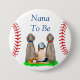 Nana, um Baby Dusche Knopf. Baseball-Babydusche. Kleiner Baby in einem Baseballhut, neben seinen zwei Hundefreunden sitzend.